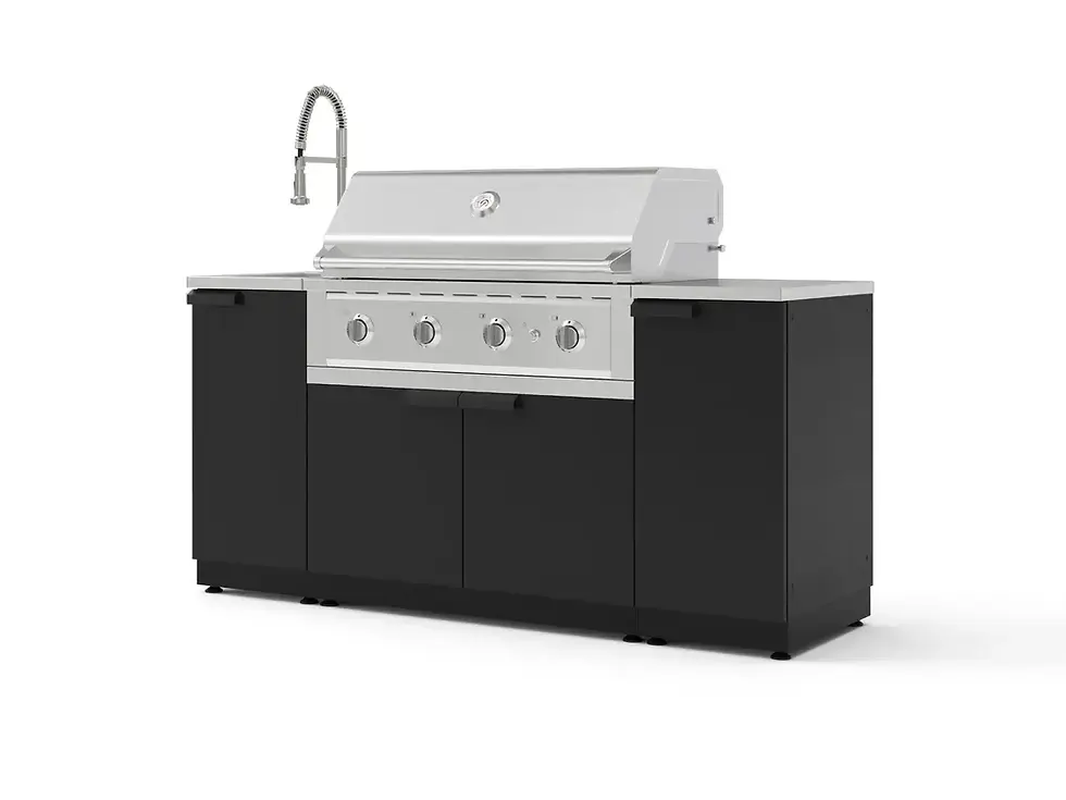 Create the ultimate backyard cooking experience with our Stainless-Steel Grill Island, designed for durability, versatility, and all-weather performance. Crafted from premium 304 stainless steel, it resists rust, corrosion, and extreme conditions while offering a sleek, modern look. Soft-close hinges, easy-to-clean surfaces, and a weatherproof build make maintenance effortless, so you can focus on what matters—perfecting every meal. The cabinets resist mold, mildew, stains, and corrosion, ensuring long-lasting performance. A scratch-resistant coating protects against wear, while heavy-duty double-walled doors provide strength and stability. Designed for convenience, they are easy to clean and maintain, with height-adjustable levelers for stability on uneven surfaces. Magnetic door latches and soft-close hinges ensure smooth, effortless operation, while the reinforced frame enhances longevity. 16 in. 1-Door Cabinet is the ideal backyard storage space for everything from plates and serving dishes to stationery and supplies. Built for durability, it offers a weight capacity of up to 630 lbs., ensuring ample space for all your backyard essentials. The 16 in. Sink Cabinet is a great addition to your outdoor kitchen with a dedicated station for effortless cleanup and food preparation. It features under-sink storage, a height-adjustable shelf and three pre-slotted holes for plumbing lines. The Performance Grill Series is built for power, precision, and ease, featuring a sturdy, dual-layered hood with a full-length handle that locks in heat from high-performance tube burners delivering up to 48,000 BTUs. The grill features 507 sq. in. of cooking space on the 33-inch grill, 562 sq. in. on the 36-inch grill, and 634 sq. in. on the 40-inch grill. A continuous spark battery-powered pulse ignition ensures quick, reliable startups, while stainless steel flame tamers reduce flare-ups, distribute heat evenly, and convert drippings into flavorful smoke. Achieve steakhouse-quality sears with the infrared sear burner, and keep food warm, toast buns, or melt cheese on the large elevated warming rack. The set is finished with durable, premium countertop options, or in a no-top configuration that allows you to select your own countertop surface for added customization. Elevate your outdoor cooking with the NewAge Modular Outdoor Kitchen and make every meal an unforgettable experience.